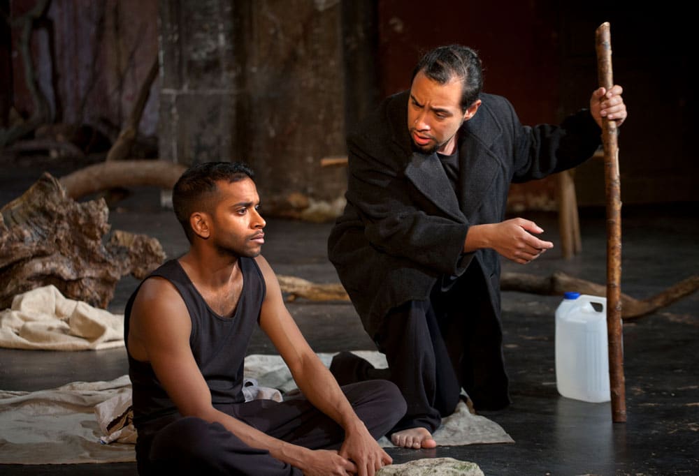 La dolcezza dell’impensabile è il tono che caratterizza i lavori di Peter Brook. In The prisoner – in scena al teatro Vittoria nell’ambito di Romaeuropa Festival – senza che nemmeno ce ne accorgiamo, appena seduti in platea riusciamo a scivolare nel paesaggio senza tempo che Brook e la sua collaboratrice storica Marie-Hèlène Estienne, ormai assurta al ruolo di coregista, mettono in scena. Ad aiutarci ci sono la scenografia beckettiana (tronchi, rami secchi, rocce) di David Violi e le luci – un’illuminazione che sembra una penombra di candele e piccoli fuochi – di Philippe Vialatte.