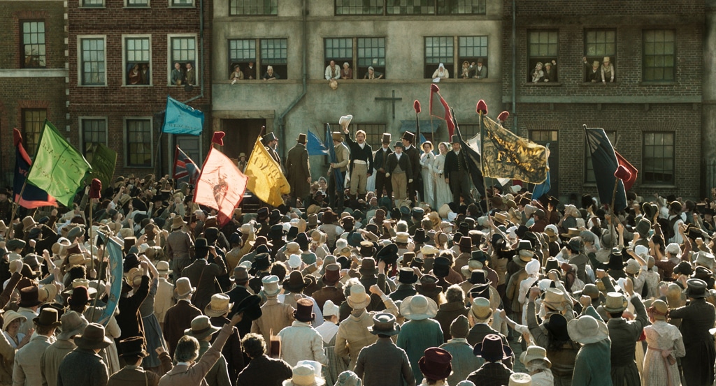La ricostruzione di Mike Leigh, non a caso, insiste sul fatto che all’epoca si dibatteva non su come distruggere ma piuttosto su come ampliare i diritti nell’ambito delle istituzioni democratiche. Su come riformare queste ultime, malgrado ci fosse quasi un tappo classista a bloccarle, che alcuni, come si vede nel film, ritenevano quasi impossibile rimuovere. Un insegnamento, nella situazione di oggi, che può essere esteso alle critiche all’Unione europea e a molto altro.
