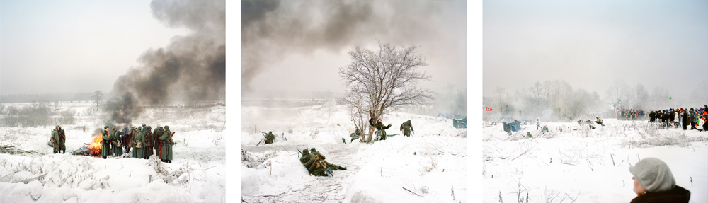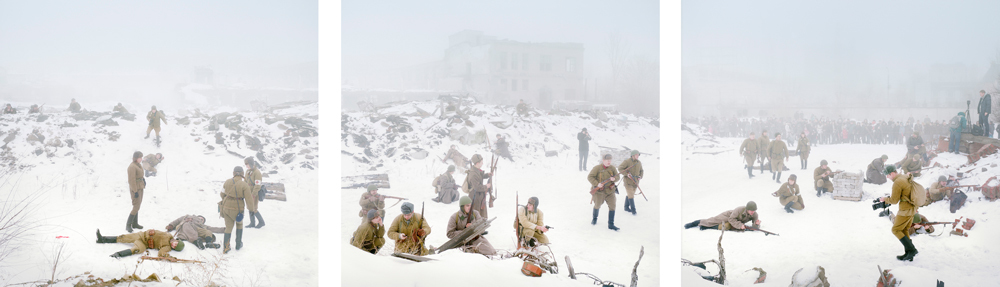 La serie Reconstruction mette in scena alcune storiche battaglie russe, rese anacronistiche attraverso la scelta di inserire nella composizione alcuni spettatori che appartengono alla nostra epoca. Gronsky costruisce le immagini su trittici che creano una prospettiva panoramica, come se fossero un grande film hollywoodiano.