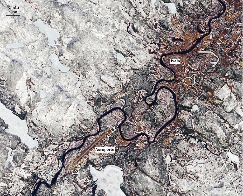 Quest’immagine, scattata dal satellite Landsat 8 della Nasa, mostra la cittadina di Ivalo, che ha circa tremila abitanti, e le aree circostanti. Una parte del terreno è ancora ghiacciata, mentre il resto è fangoso a causa dell’acqua di disgelo.