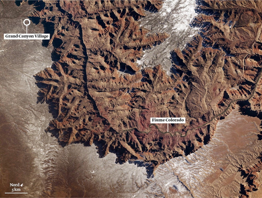 In questa foto, scattata da un astronauta a bordo della Stazione spaziale internazionale, il Grand Canyon può sembrare una catena montuosa invece che una grande voragine, a causa di un’illusione ottica chiamata inversione dei rilievi.