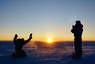 Dopo quattro mesi di buio, il sole sorge sulla stazione di ricerca Concordia, in Antartide. Il medico Stijn Thoolen (a sinistra) e l’ingegnere Wenceslas Marie-Sainte fanno parte di una squadra di dodici persone che sta trascorrendo un anno nella base, in uno degli ambienti più estremi e isolati della Terra. L’obiettivo della missione è condurre esperimenti in vari campi, tra cui psicologia umana, biologia, fisica atmosferica, meteorologia e astronomia. La stazione di ricerca Concordia è una delle tre basi attive tutto l’anno in Antartide.