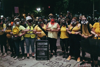 Le madri che hanno formato un gruppo contro la violenza della polizia protestano davanti al tribunale distrettuale di Portland, in Oregon. Nella città le manifestazioni contro gli abusi delle forze dell’ordine sono cominciate subito dopo l’uccisione di George Floyd a Minneapolis, il 25 maggio, e da allora si ripetono ogni giorno. All’inizio di luglio il presidente Donald Trump ha mandato in città agenti del dipartimento della sicurezza nazionale. Sui social network sono stati diffusi video in cui si vedono gli agenti, con equipaggiamento militare, picchiare manifestanti pacifici e caricarli su veicoli non contrassegnati.