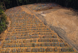 Le tombe nel cimitero Nossa Senhora Aparecida. Con almeno due milioni di contagi e più di 80mila morti, il Brasile è il secondo paese più colpito al mondo dalla pandemia di covid-19, dopo gli Stati Uniti. Due ministri del governo di Jair Bolsonaro sono risultati positivi al virus, mentre l’Organizzazione mondiale della sanità ha lanciato l’allarme sul rischio di un aumento dei contagi tra le comunità indigene in tutto il continente americano. Secondo i dati aggiornati all’inizio di luglio in Brasile almeno 15mila indigeni sono risultati positivi al tampone, diecimila dei quali vivono in aree protette.