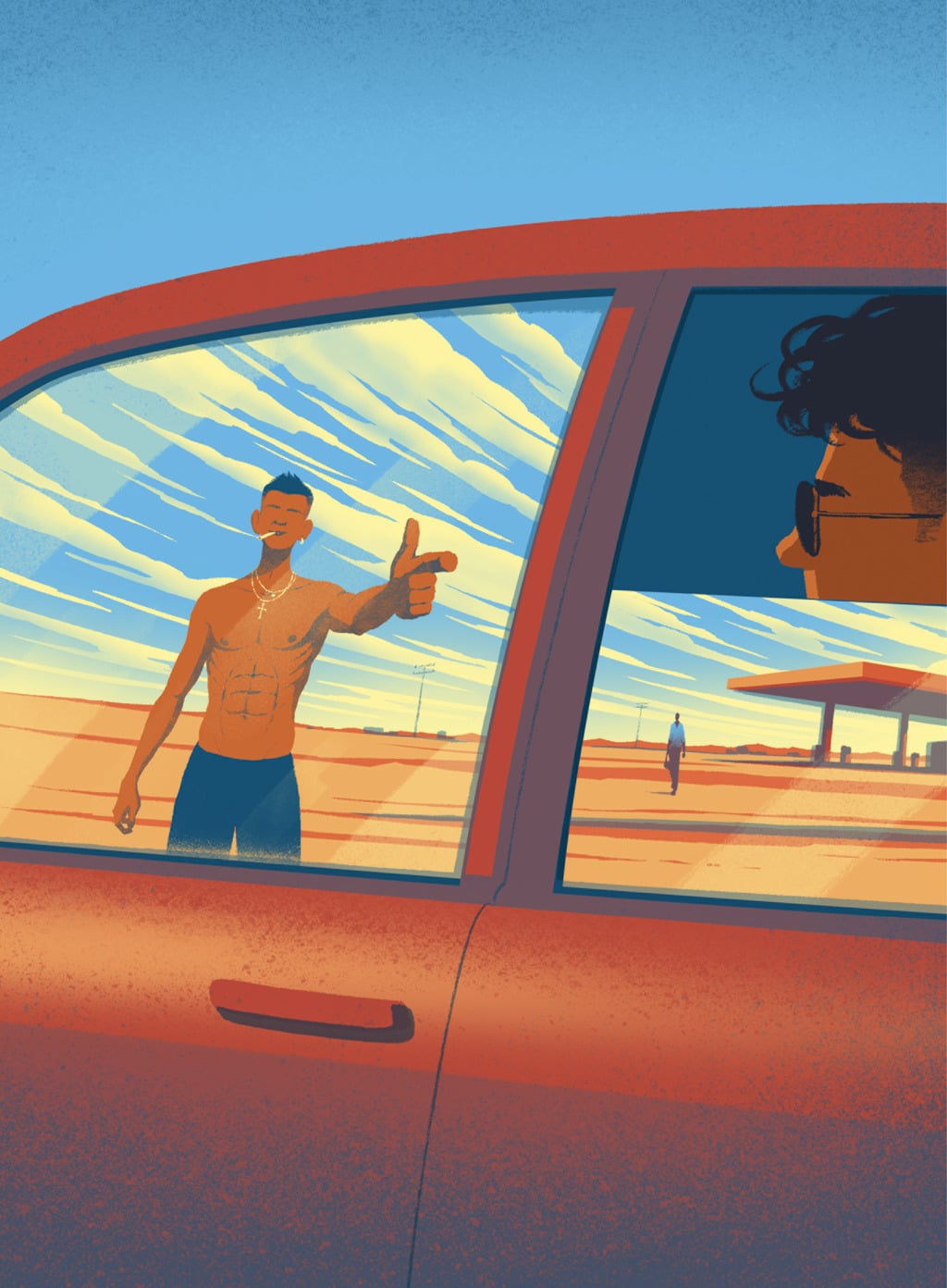 Ci fermiamo alla pompa di benzina. Bebito manda Nelson all’Oxxo a prendere birre e sigarette e scende dall’auto e si mette a fare il pagliaccio davanti al mio finestrino: si toglie la maglietta per mettere in mostra i muscoli che si è fatto in un anno di galera. Nelson torna e Bebito si rimette la maglietta e salgono entrambi davanti e Nelson mette in moto la Cutlass e Bebito si accende una Marlboro, stappa una Tecate e mi porge una lattina. Dico di no.