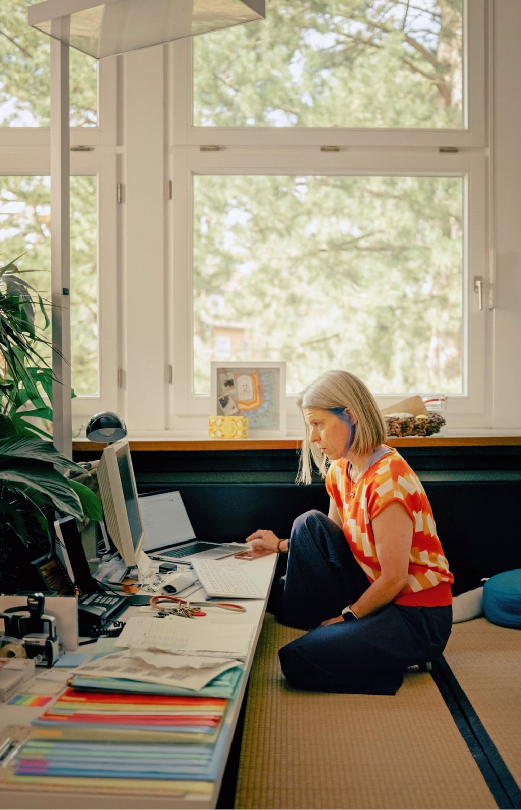 La preside ha qualche ciocca colorata tra i capelli grigi e lo smalto blu ai piedi. Si è tolta i sandali Birkenstock e gli occhiali da sole verde fluo. È inginocchiata davanti al computer su un tatami, una stuoia giapponese. Non è scomodo, a lungo andare? “In realtà no, perché non sto mai ferma nella stessa posizione: sono costretta a muovermi”, risponde lei. “E quando entra uno studente mandato da un insegnante perché disturbava la lezione, si trova davanti la preside che lo guarda dal basso, in ginocchio. Fa un certo effetto”. Quale effetto? “Lo sottrae a una posizione subordinata. Le cose insolite rompono gli automatismi e creano le condizioni per un dialogo aperto”.
