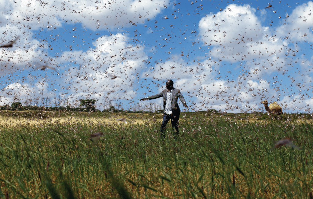 Dopo una stagione insolitamente piovosa, che ha creato le condizioni perfette per la riproduzione di questi insetti, quello che le Nazioni Unite hanno definito “il peggior sciame in venticinque anni” è tornato a devastare il Corno d’Africa.