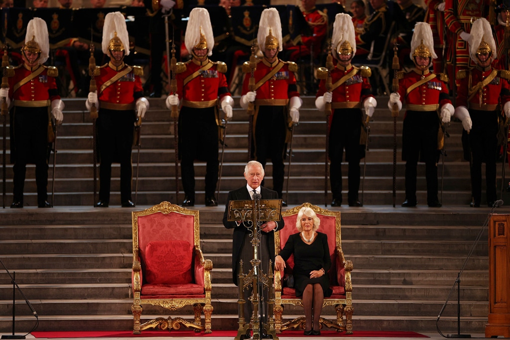 Re Carlo III ha pronunciato il 12 settembre il suo primo discorso davanti al parlamento, promettendo la sua fedeltà al governo costituzionale. Più tardi, insieme ai due fratelli e alla sorella, ha partecipato alla veglia per la madre, Elisabetta II, nella cattedrale di St Giles, a Edimburgo. Il 13 settembre sarà in Irlanda del Nord. Intanto gli attivisti per le libertà civili e altri hanno espresso preoccupazione per le reazioni della polizia nei confronti di persone che manifestavano contro la monarchia, tra cui l’arresto di un uomo a Edimburgo per aver aggredito verbalmente il principe Andrea.