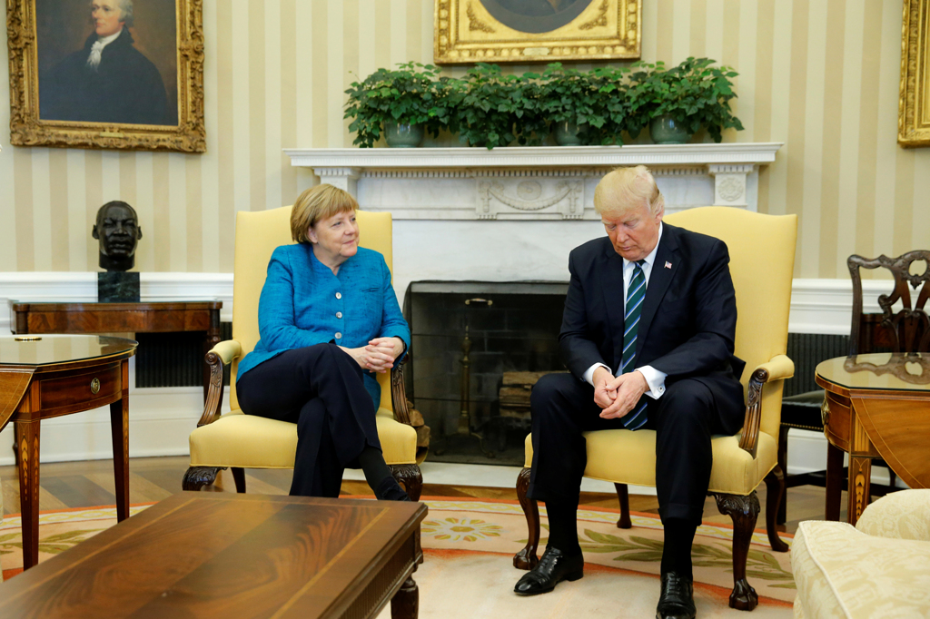 La cancelliera tedesca Angela Merkel ha incontrato per la prima volta Trump alla Casa Bianca. I due leader sono sembrati su posizioni diverse sull’immigrazione e l’accoglienza dei rifugiati, sui rapporti commerciali tra Unione europea e Stati Uniti e sul ruolo della Nato. Trump si è rifiutato di stringere la mano alla cancelliera.