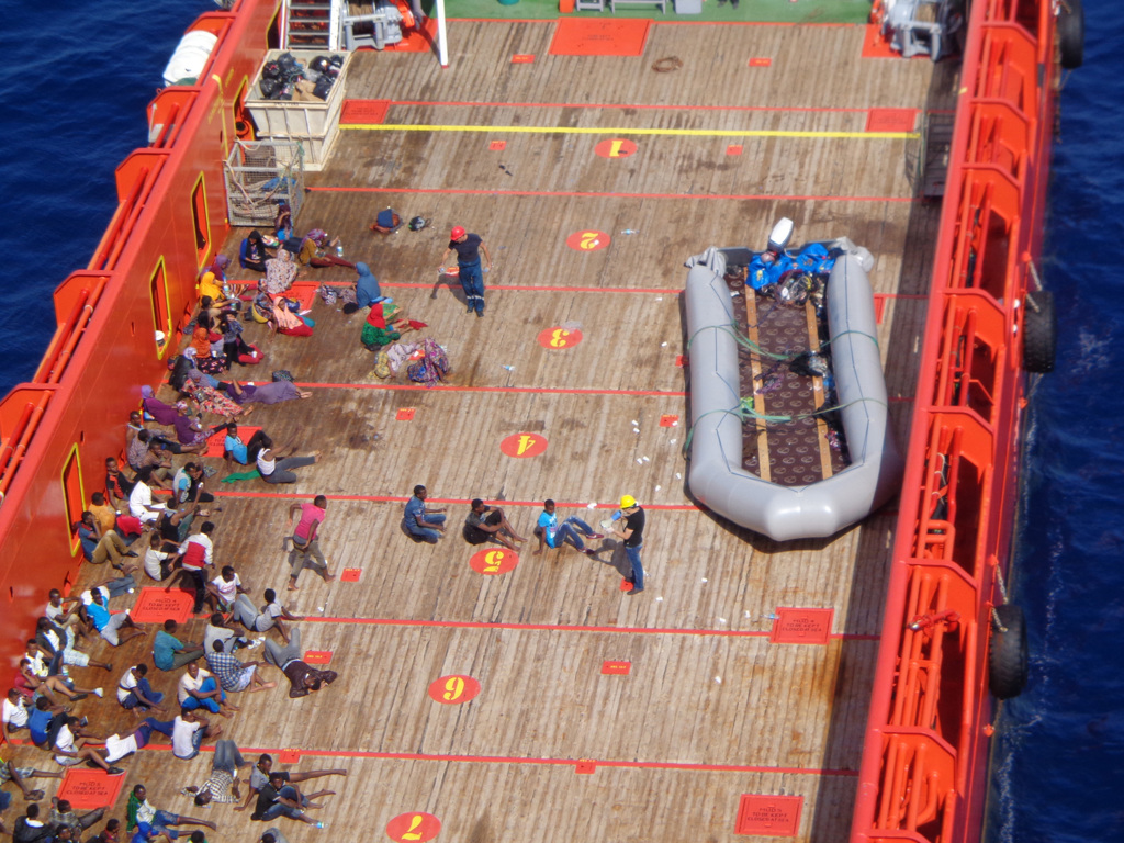 Mi raccontavano che facevano tutto il possibile, che collaboravano e fornivano i soccorsi necessari fino all’arrivo della guardia costiera. Uno di loro mi ha fatto vedere delle foto scattate tre anni prima, quando sono riusciti a soccorrere una barca: qualcuno l’aveva avvistata e ha contattato una nave per i rifornimenti (di cui non ricordo il nome).