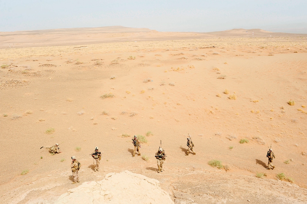 Una sua tipica immagine è quella scattata nel 2009 nella provincia di Helmand, in Afghanistan. Sullo sfondo di un paesaggio desertificato marrone pallido, vediamo sette soldati che perlustrano il terreno alla ricerca di ordigni esplosivi improvvisati. Avanzano a pochi passi l’uno dall’altro. Lavorano insieme, ma ognuno è solo, e a questa distanza e da questa altezza (è difficile dire se il fotografo sia su un elicottero o su un’altura) quei soldati sembrano soldatini giocattolo. Cercano, senza trovare niente. Qualche minuto dopo, c’è un’esplosione. Disco night sept. 11, che propone molte immagini di momenti che precedono un evento terribile o, ancora più vividamente, gli strascichi di un conflitto, comunica la follia, la confusione, la teatralità e i paradossi della guerra. Mi ha indotto a farmi la domanda che ogni libro sulla guerra dovrebbe sollevare: ma che diavolo sta succedendo?