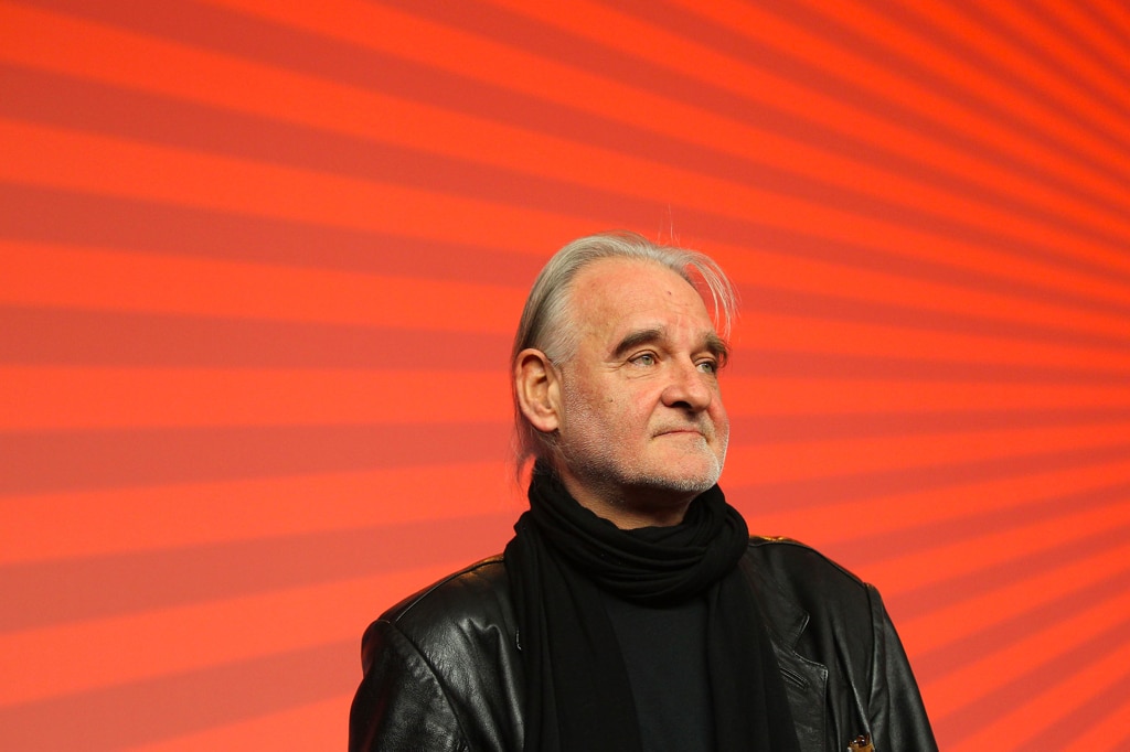 Lo scrittore László Krasznahorkai al funerale di Béla Tarr . Budapest, 6 febbraio 2026 (Arpad Kurucz, Anadolu/Getty Images)