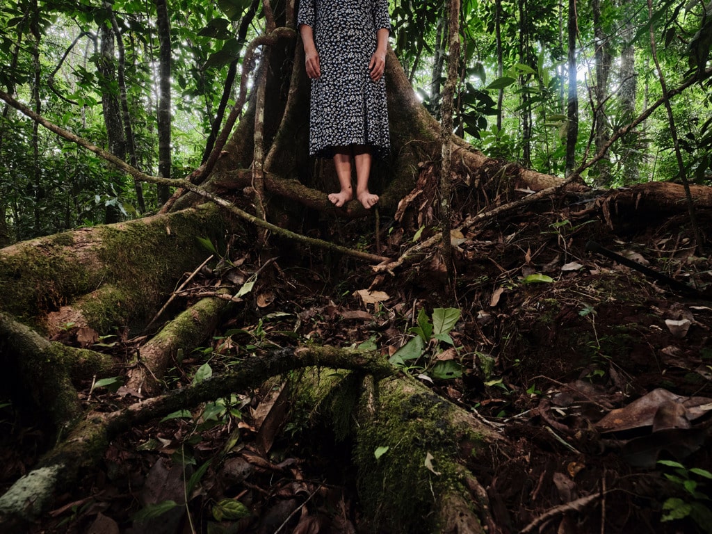Dal 2019 Edoardo Delille e Giulia Piermartiri cercano di immaginare come sarà il mondo tra qualche anno, nell’era della crisi climatica. Viaggiando tra i continenti hanno raccolto storie e testimonianze degli abitanti di diverse aree del mondo minacciate da incendi, inondazioni, scioglimento dei ghiacciai e innalzamento dei mari, e hanno cercato immagini di paesaggio che potessero rappresentare questi cambiamenti. Le hanno poi proiettate sulle persone incontrate nel loro percorso e hanno fatto un nuovo scatto. Il risultato è una serie di fotografie oniriche e inquietanti, proiezioni metaforiche di un futuro non troppo lontano. (Mélissa Jollivet)