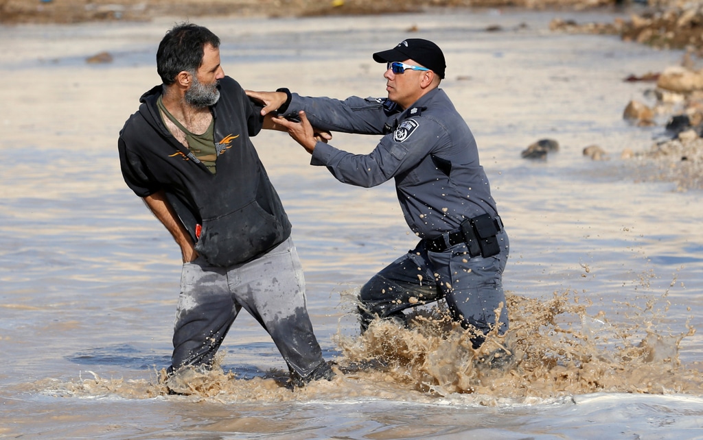 L’acqua che ingrossava la pozzanghera ha reso sospettose anche le capre di Khan al Ahmar. Si sono avvicinate e l’hanno annusata. Non c’è da stupirsi. Soltanto la settimana scorsa, un lago di acque di scolo si era formato nello stesso, piccolo bacino dopo l’esondazione di una fogna sulla collina dove l’insediamento di Kfar Adumin prospera felice. Per tre giorni i residenti, la folla e gli attivisti avevano dovuto sopportare il tanfo. Quanto era fondato il sospetto che lassù in collina i loro vicini avessero rotto intenzionalmente le condutture? Non possiamo saperlo, ma non dimentichiamo che gli stessi vicini, dieci anni fa, hanno lanciato una campagna per la demolizione del villaggio e lo sfratto dei suoi abitanti. Di sicuro possono aspettare qualche giorno prima che il loro desiderio si realizzi.