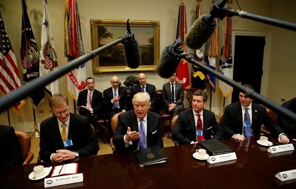 Nel quarto giorno da presidente degli Stati Uniti, Donald Trump ha ricevuto il 23 gennaio dodici grandi imprenditori statunitensi. Fedele alle promesse fatte in campagna elettorale, Trump li ha rassicurati sulla sua volontà di tagliare “nettamente” le imposte sulle imprese e di cancellare “almeno il 75 per cento” delle regolamentazioni in vigore.