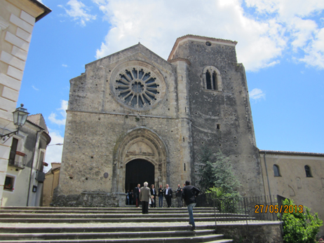 A un’ora circa a nord-ovest di Cosenza c’è la deliziosa Altomonte, “antico borgo tutto tortuosi vicoli e scalinate” (Guida rapida d’Italia). Altomonte ha soprattutto due motivi d’interesse: la splendida posizione sul crinale, a guardia delle valli del Fiumicello e del Grondo, e la chiesa tardo-trecentesca di Santa Maria della Consolazione, al cui interno i miei compagni di viaggio esaminano lunghissimamente il monumento funebre di Filippo Sangineto, realizzato da un anonimo scultore napoletano vicino a Tino di Camaino. Facciata della chiesa: