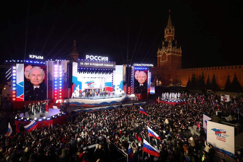Il 18 marzo Vladimir Putin ha celebrato l’anniversario dell’annessione in concomitanza con la sua rielezione, sancita dall’87 per cento dei voti, un plebiscito. Poco importa se la percentuale rispecchia o meno la realtà del paese. In serata sono arrivate le immagini del leader russo che prendeva la parola sulla piazza Rossa di Mosca, circondato da ragazzi: un grande momento putiniano, che aveva l’aria di una sfida.