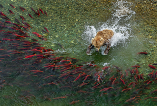 Un orso bruno cerca di catturare dei salmoni rossi in un fiume dell’Alaska sudoccidentale. Il parco nazionale di Katmai, istituito nel 1918, è l’area protetta con la… Leggi