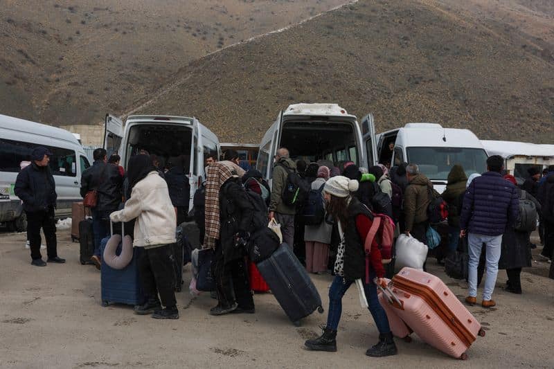 “They’ve withdrawn into themselves. Everyone is in their homes,” Kilic said. “There were sounds of bombing coming from nearby areas that were hit,” he said as people wheeled suitcases out of the border gate under light snow toward waiting minibuses.