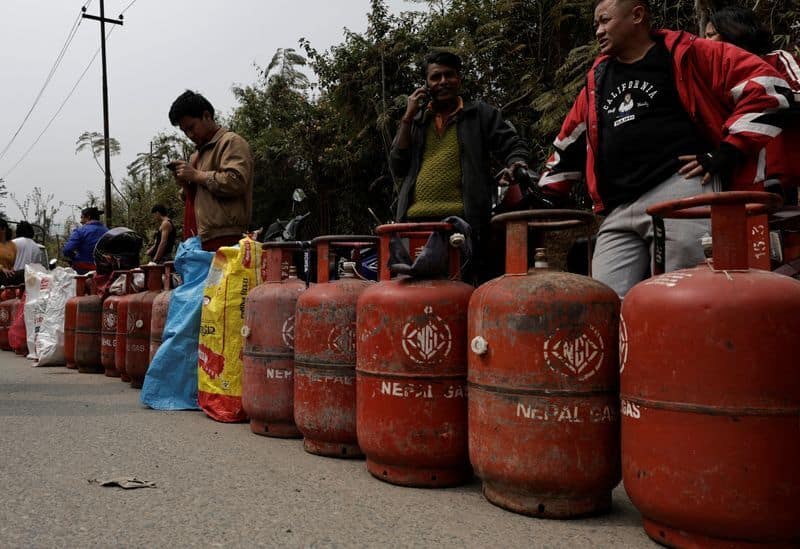 Consumers carrying empty cylinders have formed long queues outside refilling plants throughout the country, which is completely dependent on India for its supplies of fuel, including cooking gas.