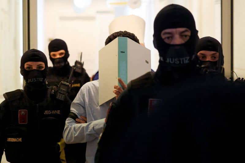 Both defendants covered their faces as they entered the courtroom, as is common in German-speaking countries to avoid being identifiable in photographs. Beran A wore a dark blue shirt and jeans, Arda K a light blue shirt and beige trousers.
